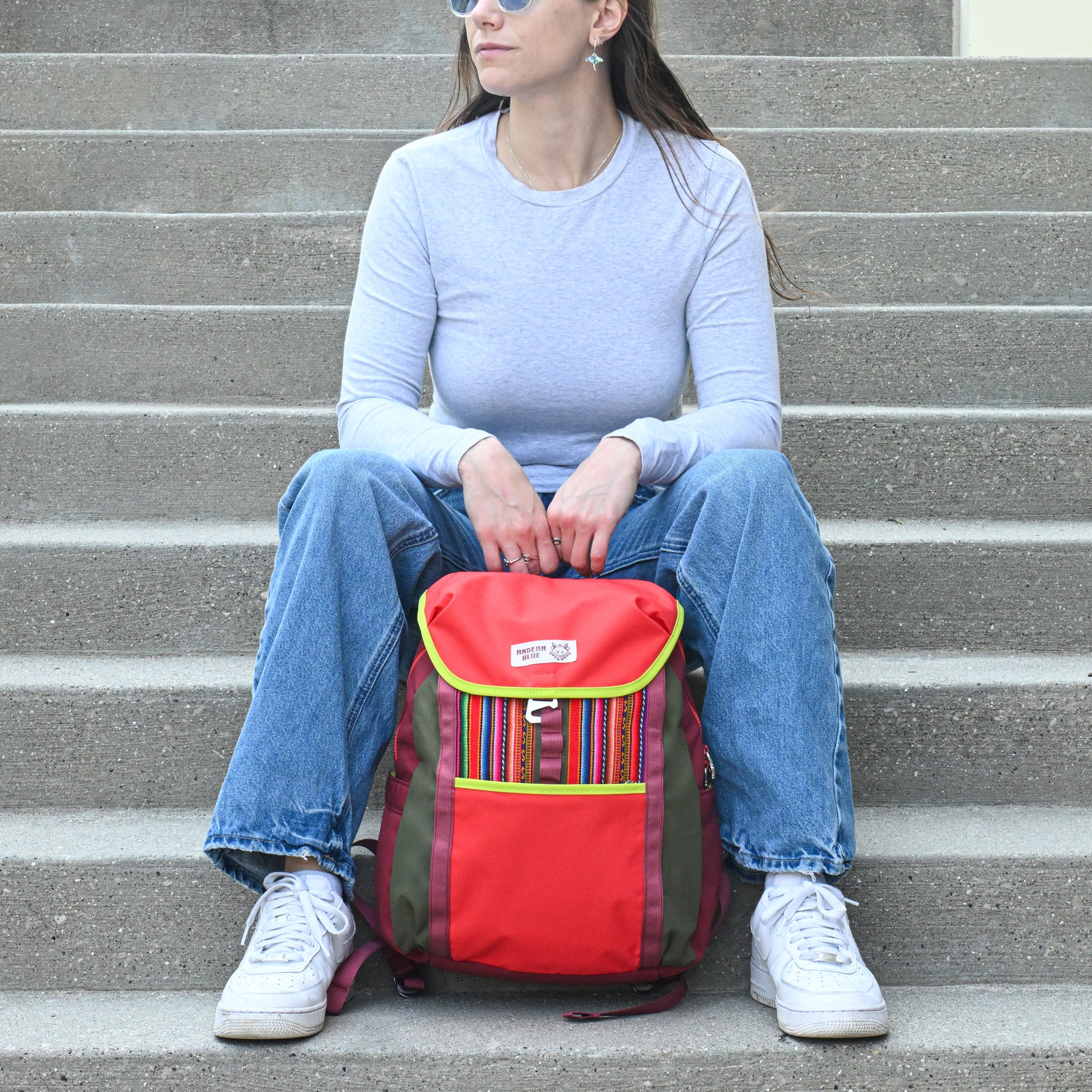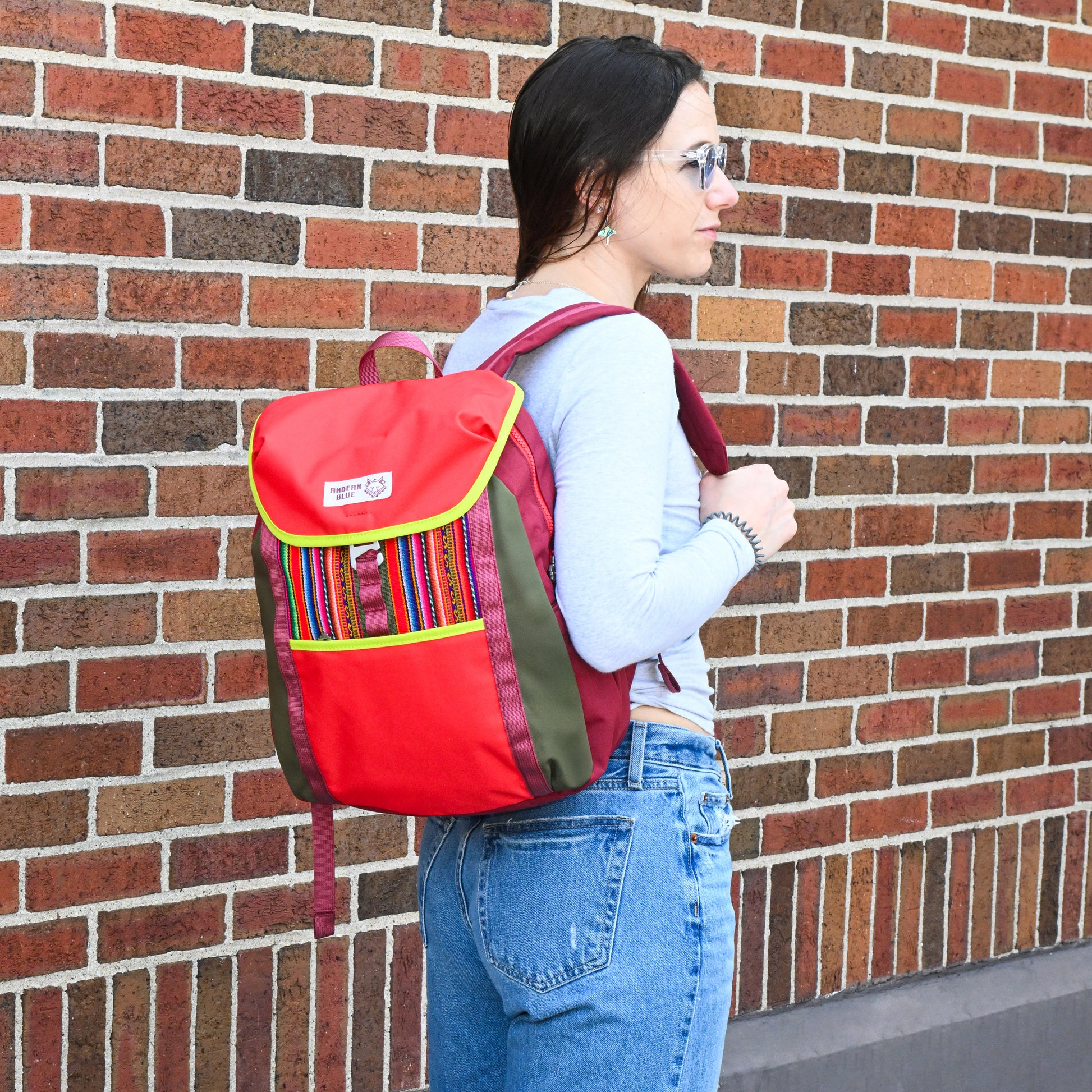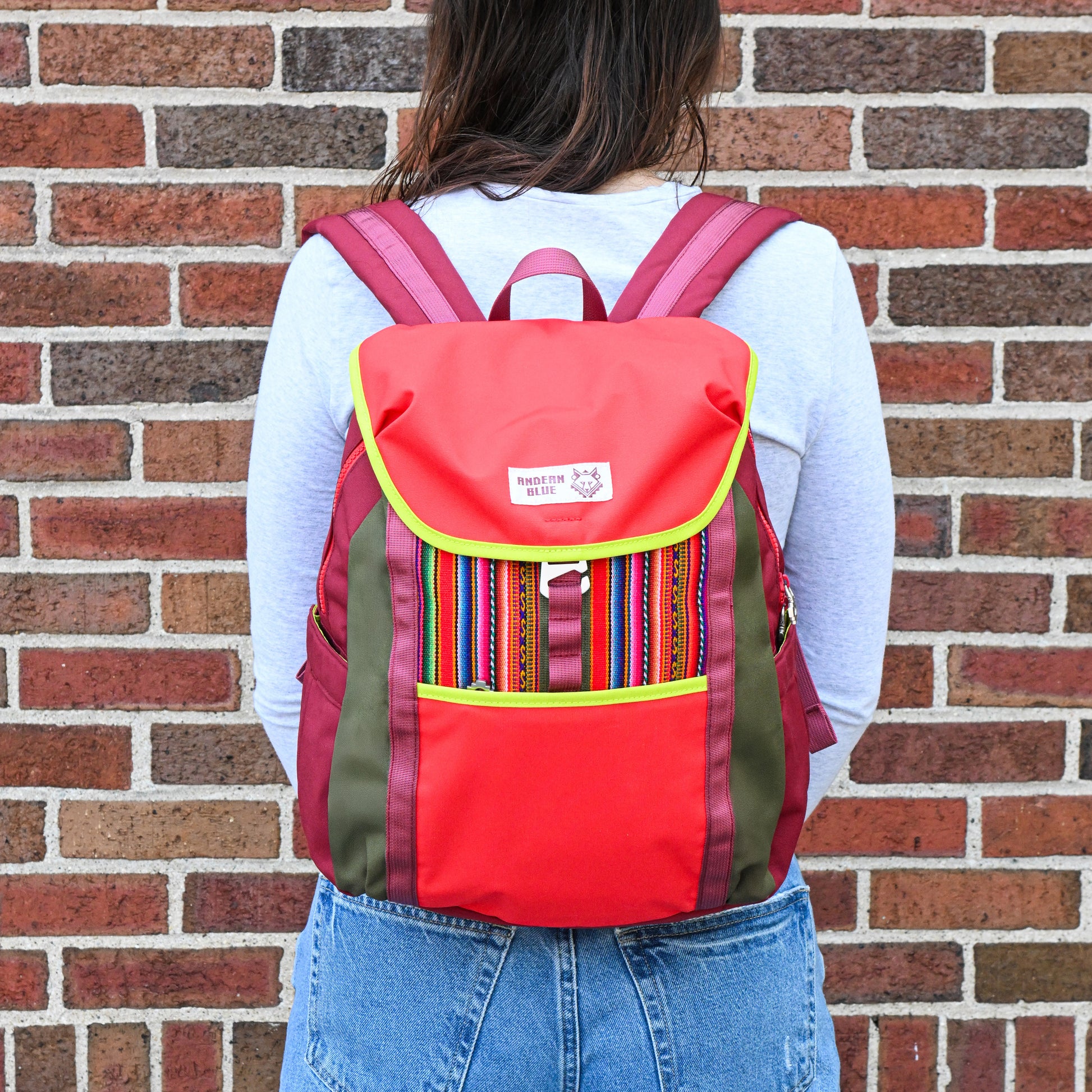 Constructed with a dependable PU-backed polyester body and reinforced stress points, this backpack is designed for balanced comfort and durability. The Andean textile panels are placed where they can be seen and appreciated, not where they bear heavy load or abrasion.